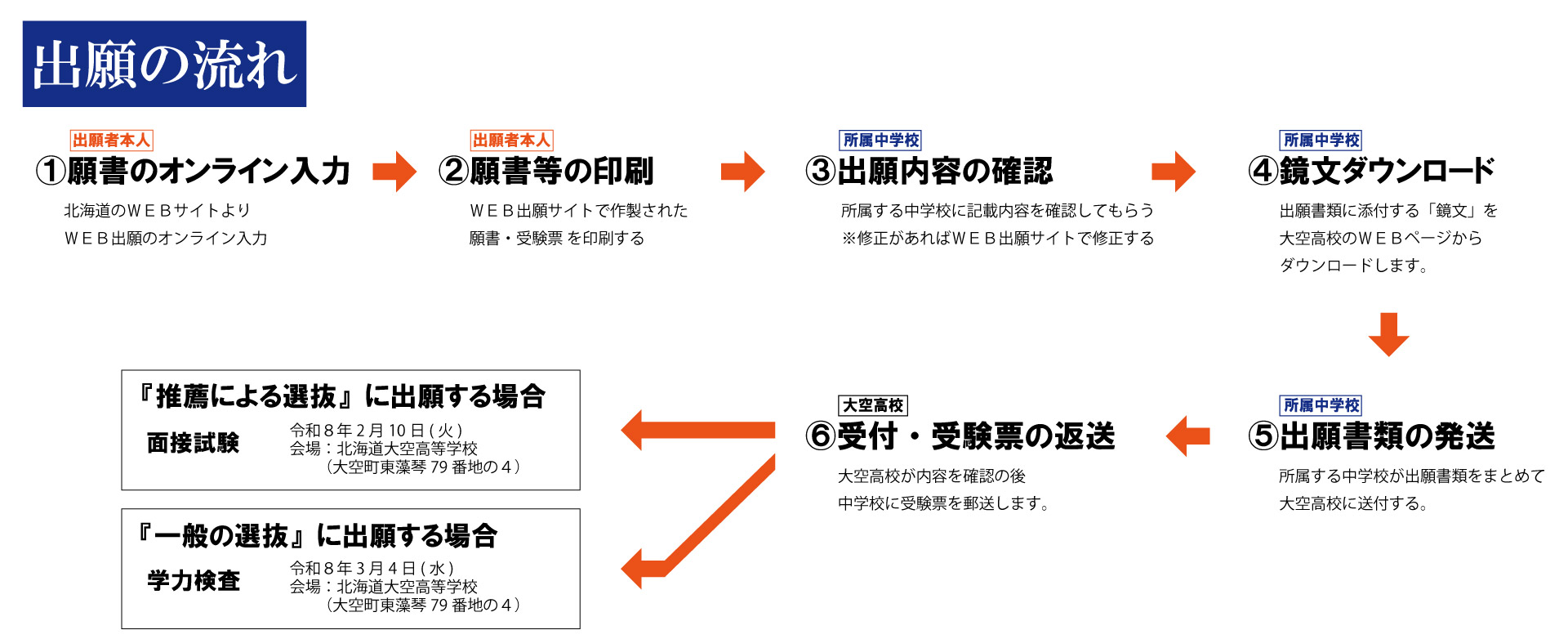 ※第2次募集の出願手続きは期間が短いことから手続きにあたり事前に大空高校へ電話連絡(0152-66-2061)をお願いします。